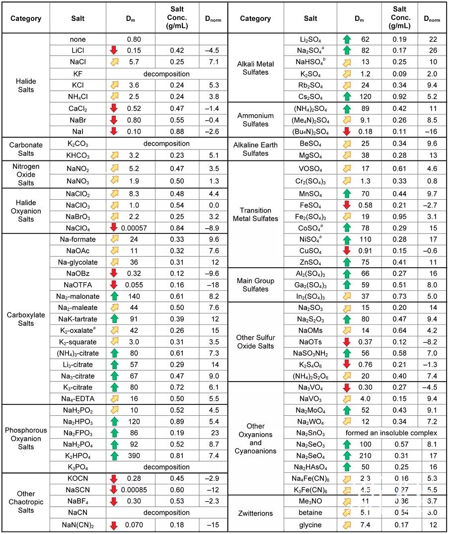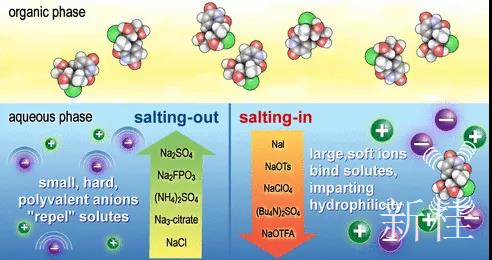 以上例子只是一個(gè)引子。今天小編想和大家分享的是萃取中的鹽析效應(yīng)( Salting-Out)。有的產(chǎn)物雖然沒(méi)有成鹽,但是它在水里面的溶解度就是很好。這個(gè)時(shí)候,你有三個(gè)選擇:(1)一遍又一遍的萃取,像有的小分子伯胺,在水里面溶解度就很大,幾克的東西萃取好幾升的溶劑。(2)篩選萃取溶劑,搭配醇類溶劑萃取;(3)不改變大的處理過(guò)程的前提下,往水里面加點(diǎn)鹽進(jìn)去,利用鹽析效應(yīng),減小有機(jī)物在水中的溶解度。第三種方法Merck團(tuán)隊(duì)還專門發(fā)了篇SCI文章(Org. Process Res. Dev.2017, 21, 1355?1370),重點(diǎn)介紹了這個(gè)操作。