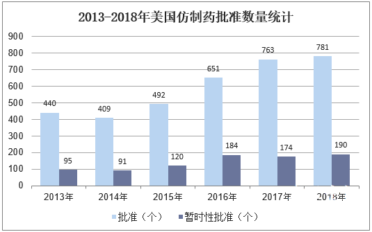 2015年以來,美國仿制藥的審批隨著收費制度的完善逐漸提速,每年批準的ANDA數量逐年增多。審批的提速,雖然對TEVA、Mylan等歐美仿制藥巨頭的增量品種構成一定的利好,但更多的則體現為對其巨大的存量業務的沖擊。2018年美國仿制藥品準企業個數為781個,暫時性品準企業個數為190個。