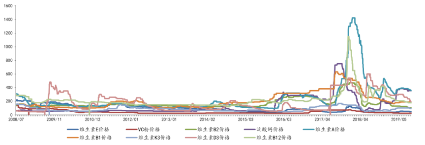 各類維生素產品價格的周期性變化: