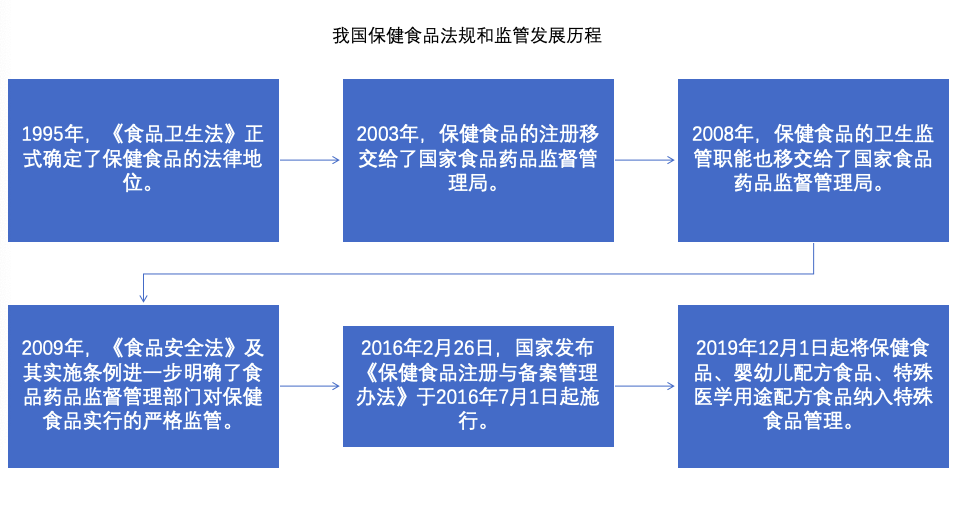 2016年7月1日《保健食品注冊與備案管理辦法》正式施行,嚴格定義:保健食品是指聲稱具有特定保健功能或者以補充維生素、礦物質為目的的食品,即適宜于特定人群食用,具有調節機體功能,不以治療疾病為目的,并且對人體不產生任何急性、亞急性或者慢性危害的食品。