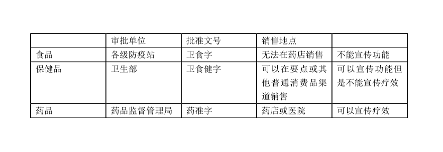以我國為例,保健品的生產要求與食品行業標準一致,不同的是,保健食品需要通過衛生部的審查認證,或者資格證書。在審查上,保健品需要做的只是跟食品一樣進行色澤、氣味、理化指標、污染物等指標的審查,但在宣傳上,保健品卻可以進行功能性宣傳。