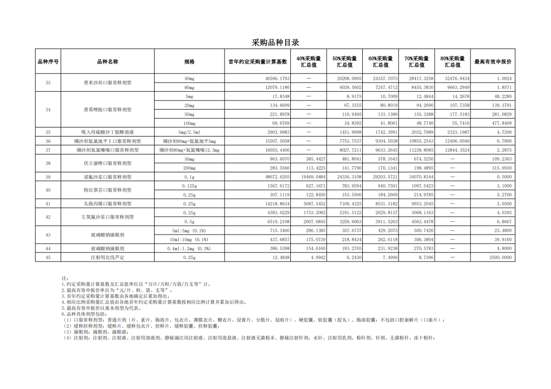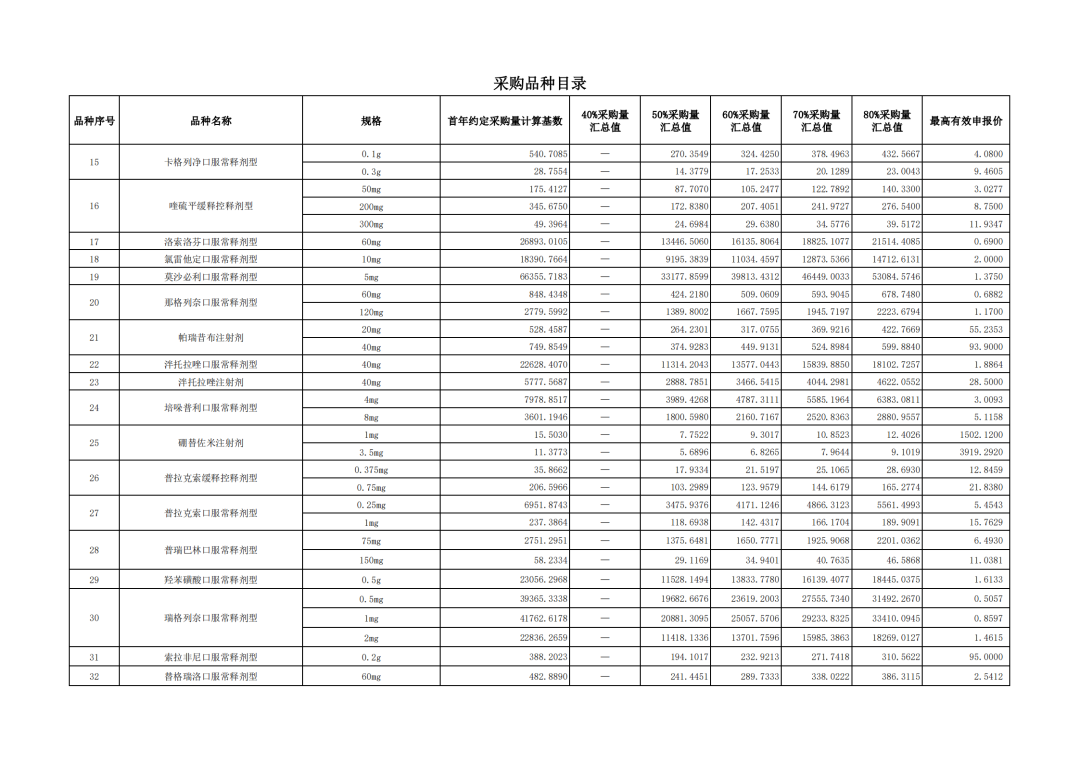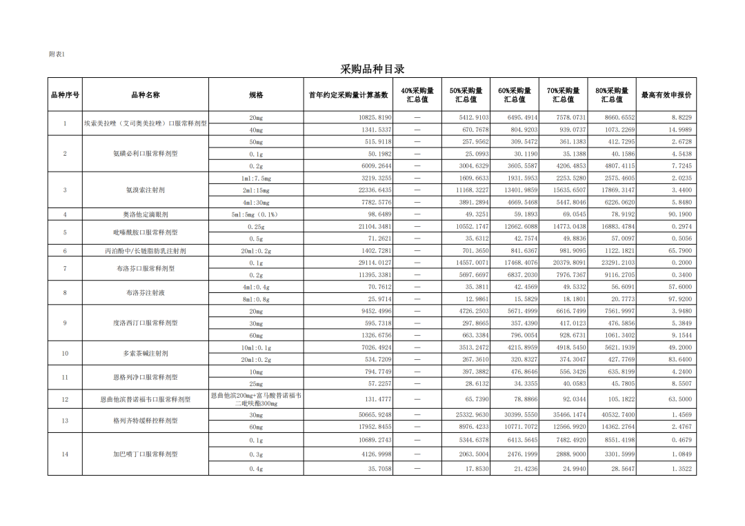 附表1 采購品種目錄