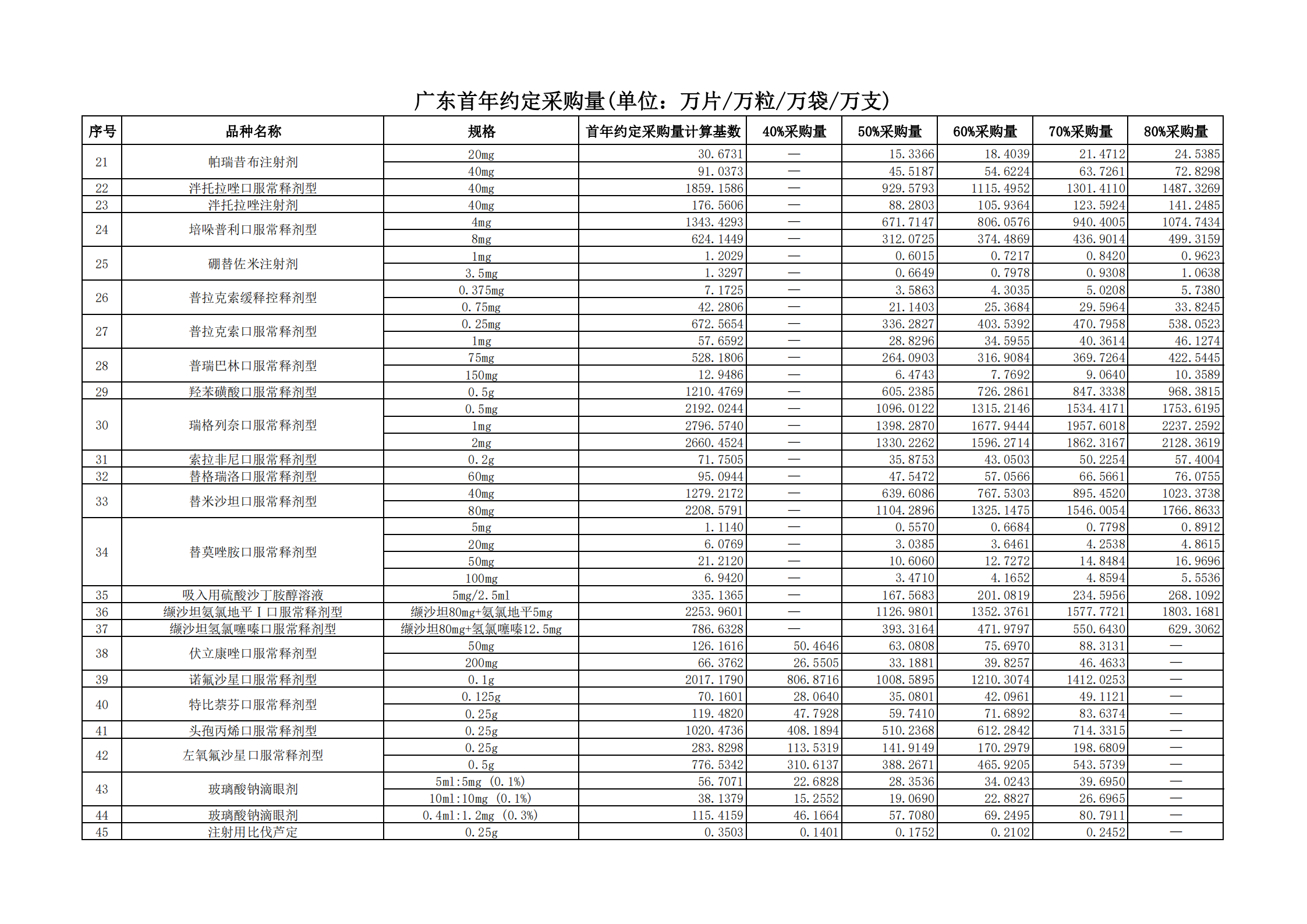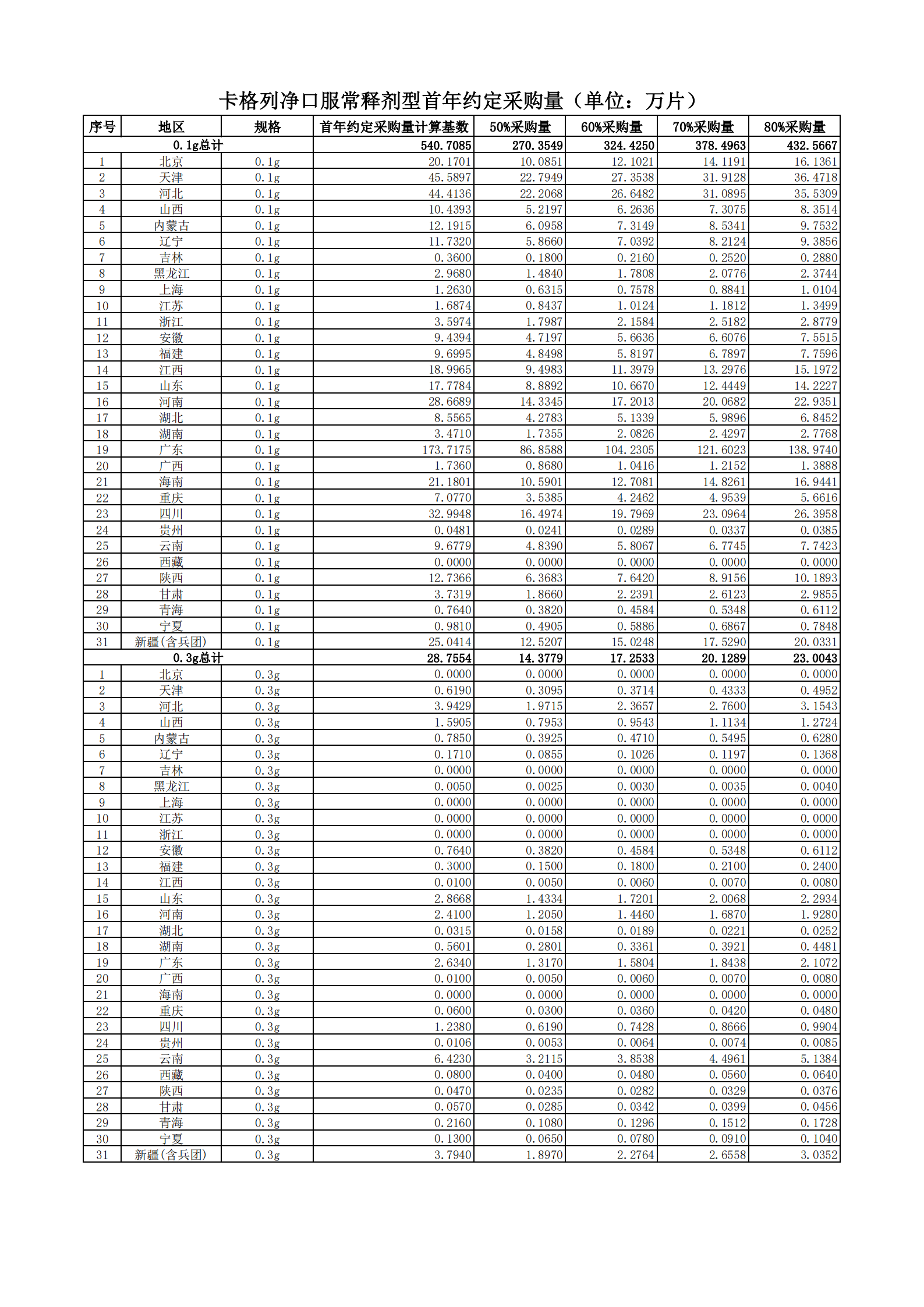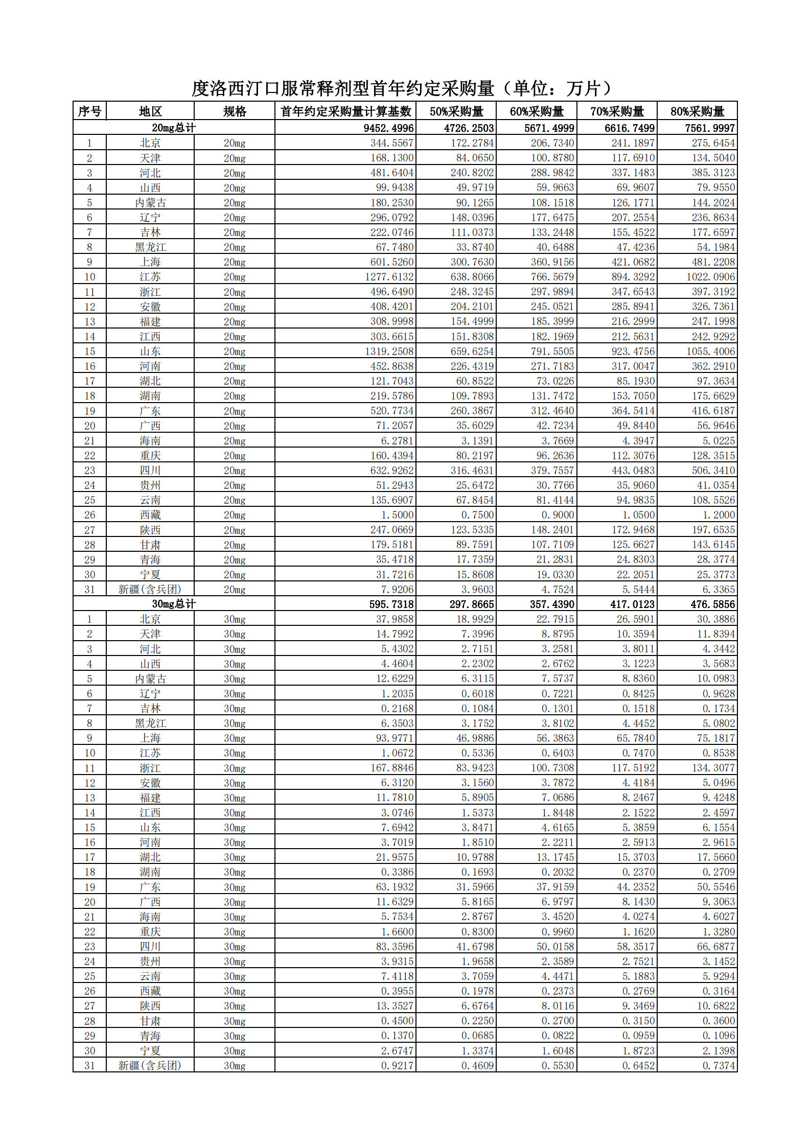 附表2 各地首年約定采購量