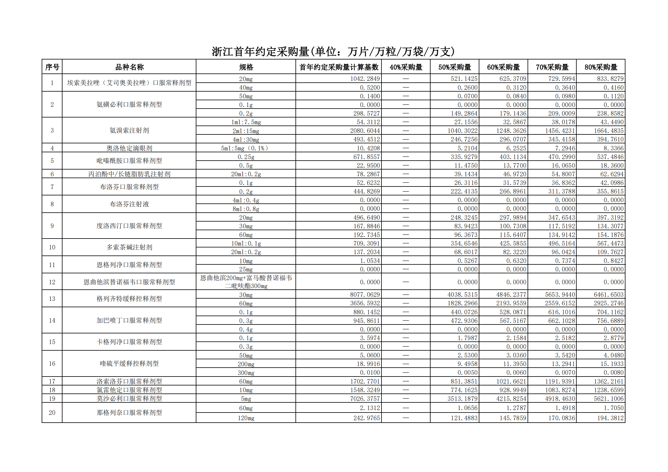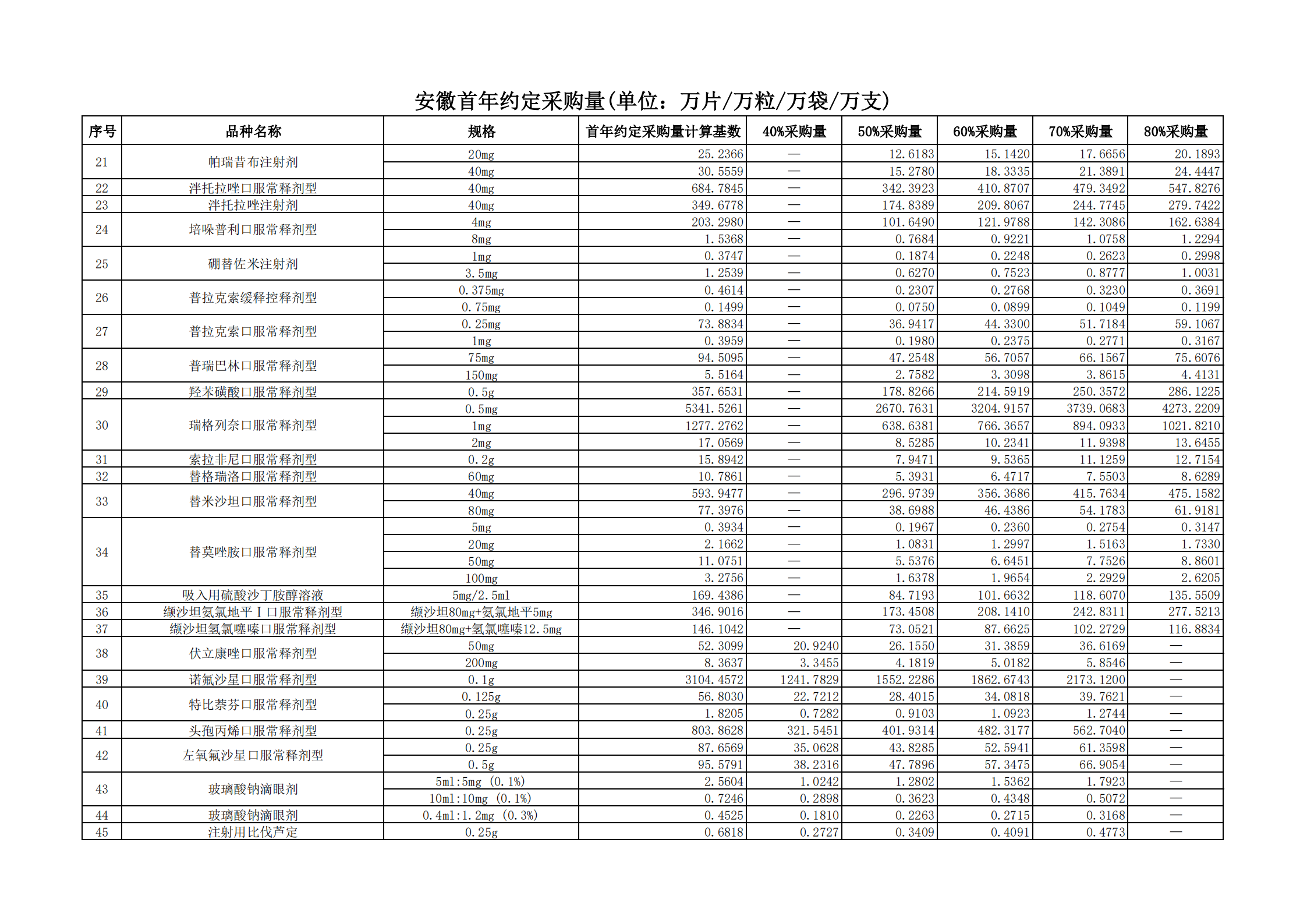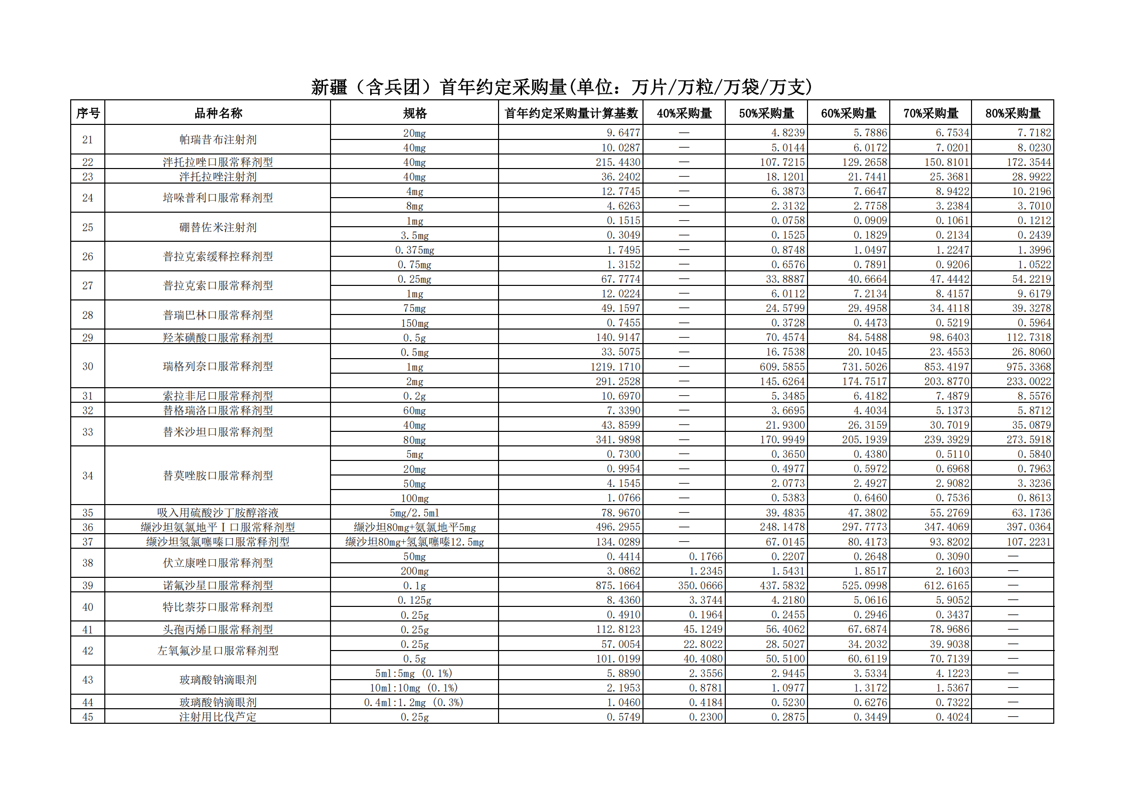 附表2 各地首年約定采購量