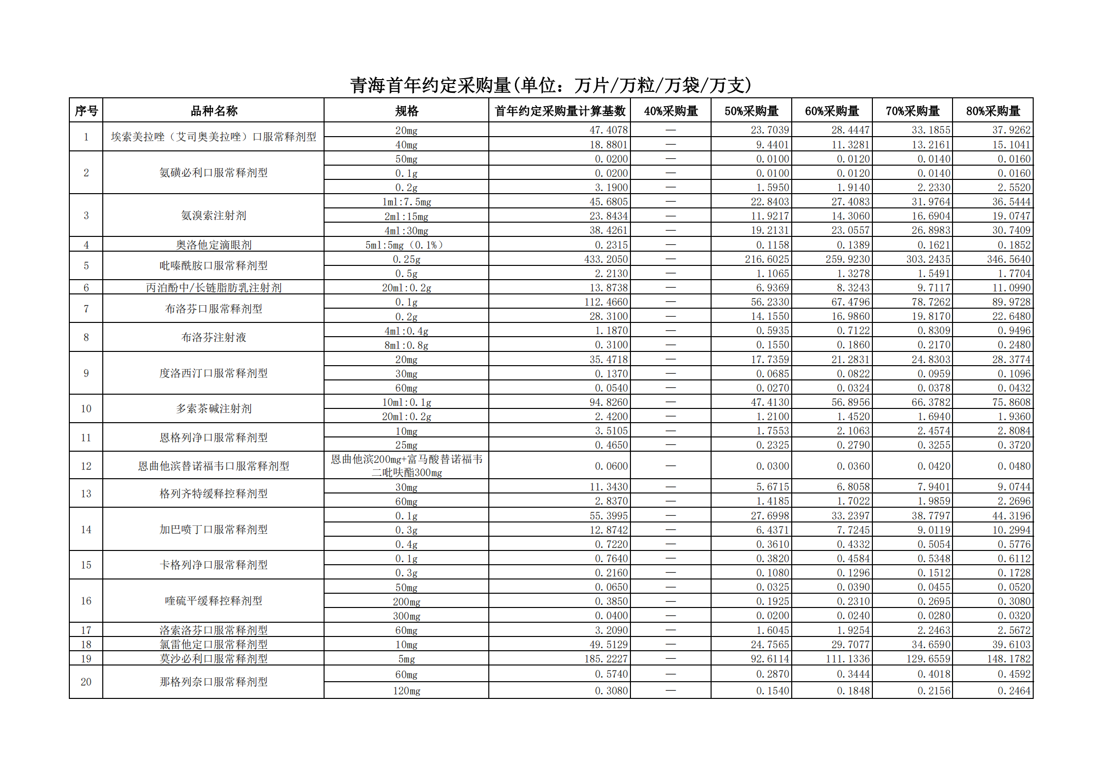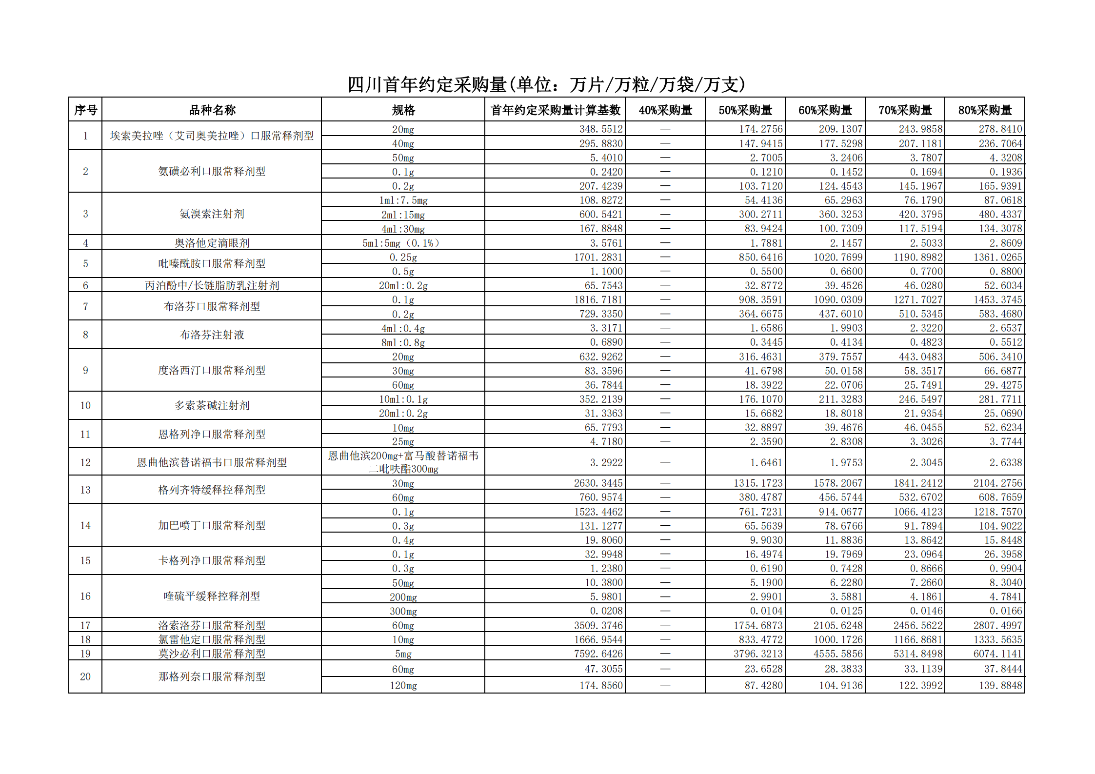 附表3 各采購品種首年約定采購量