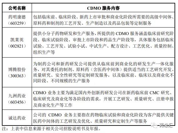 第四、公司 CDMO 服務內容及成果交付形態與同行業可比上市公司的 CDMO 服務內容及成果交付形態基本一致。具體比較如下: