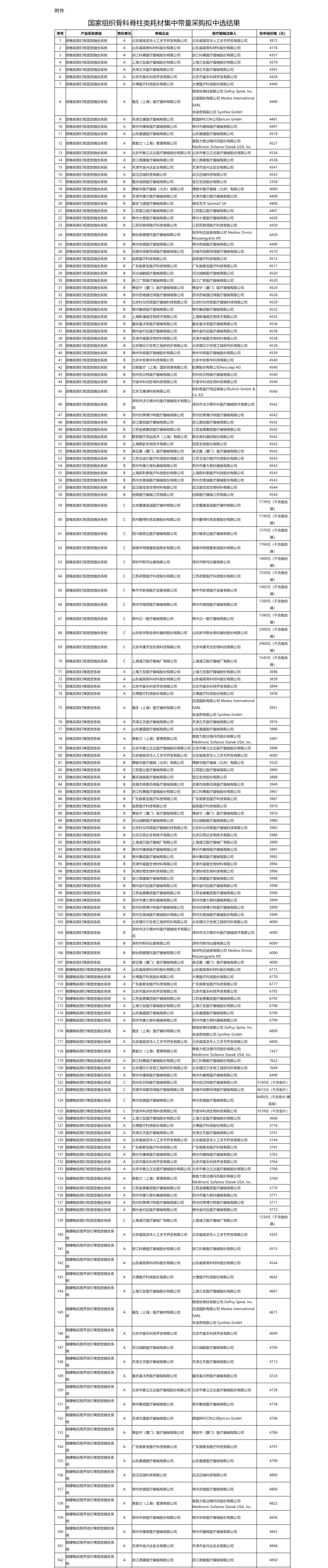 從公布的擬中選名單來看,威高骨科、大博醫療、三友醫療、邁瑞醫療等國產醫療器械企業均在中標之列。