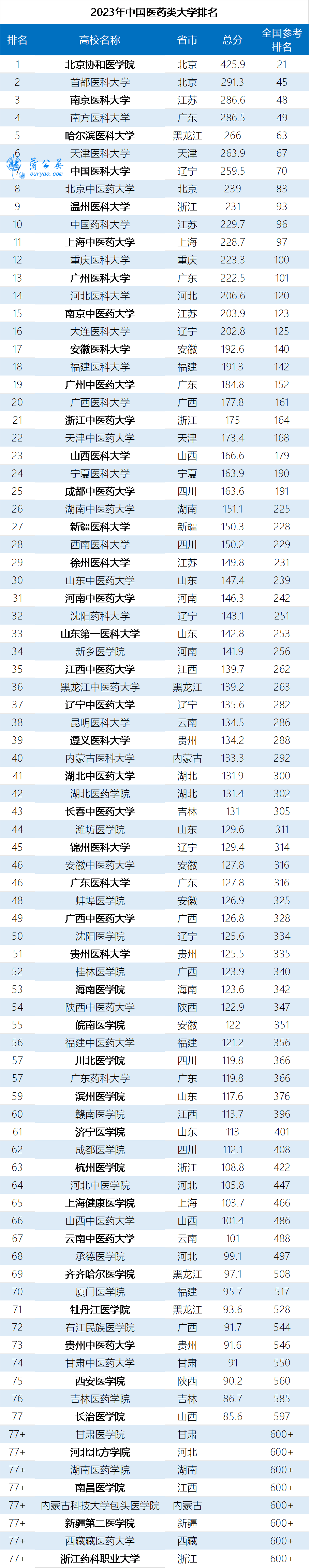 3月30日高等教育專業(yè)評價機構(gòu)軟科正式發(fā)布“2023軟科中國醫(yī)藥類大學排名”,上榜高校有85所。北京協(xié)和醫(yī)學院、首都醫(yī)科大學、南京醫(yī)科大學位列三甲。