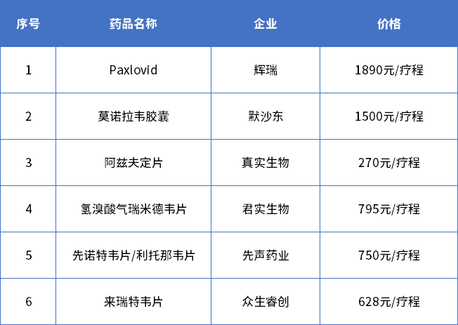 表2 國內已獲批上市的6款新冠小分子口服藥價格