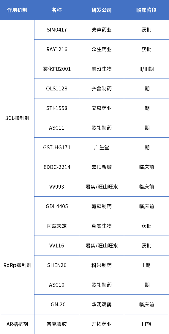 表3 國產在研新冠口服藥