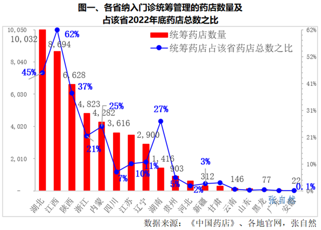 湖北納入統籌管理的藥店最多,也是唯一過萬家的省份,達10,032家。