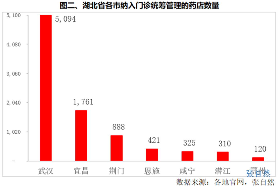 武漢對個賬分開反映最強烈,湖北是納入門診統籌管理藥店數量最多的省份,其屬下各市納入門診統籌管理的藥店數量如下: