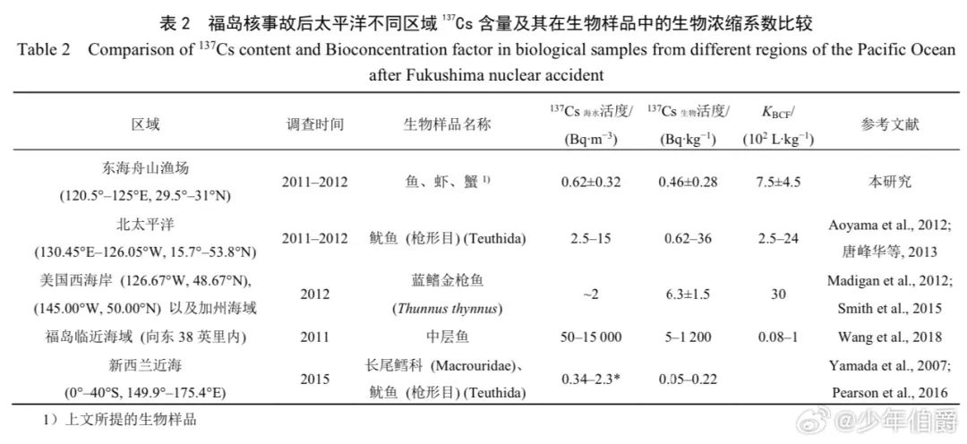 有研究結果表明,海洋中魚類、甲殼動物、軟體動物、浮游植物和大型海藻對銫的富集系數分別為 100、50、60、20和50……