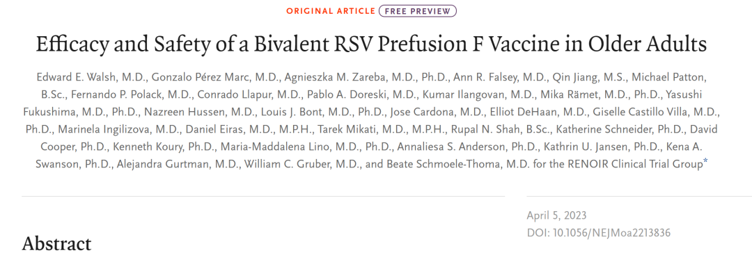 2023年5月31日,美國FDA首次批準(zhǔn)Abrysvo(RSVpreF,PF-06928316)上市,用于預(yù)防60歲及以上人群出現(xiàn)由RSV引起的下呼吸道疾?。↙RTD)。