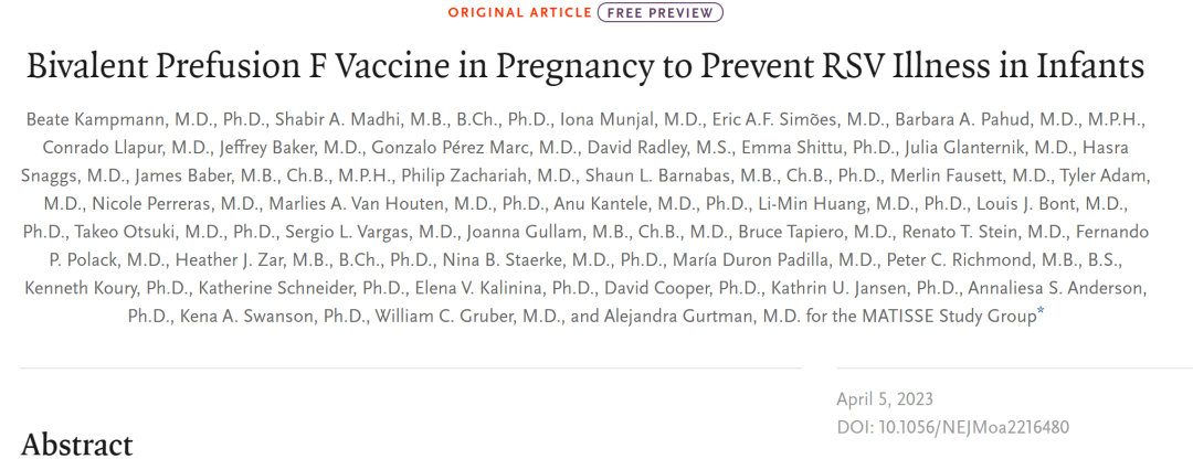 2023年8 月 21 日,輝瑞制藥宣布美國FDA批準(zhǔn)其呼吸道合胞病毒(RSV)二價(jià)疫苗 Abrysvo (RSVpreF,PF-06928316)用于妊娠32-36周孕婦,以預(yù)防出生至6個(gè)月大的嬰兒因RSV發(fā)生下呼吸道感染。