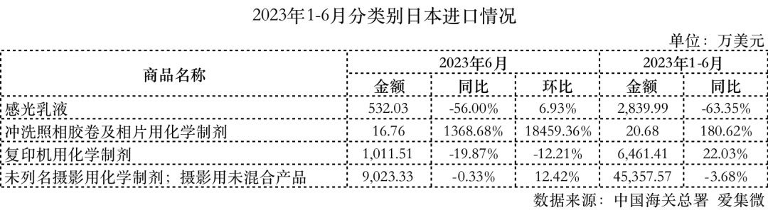 日本是全球光刻膠的主要生產地,近10年來,我國從日本進口的光刻膠占比一直超過50%,尤其在高端光刻膠領域更是重度依賴日本進口。據中國海關總署數據,2022年我國感光化學品進口總額23.50億美元,從日本進口額12.05億美元,占比51.3%。2023年1-6月份,從日本進口額為5.47億美元,同比下降9.1%,6月份進口額為1.06億美元,同比下降8.2%,環比增長9.4%。