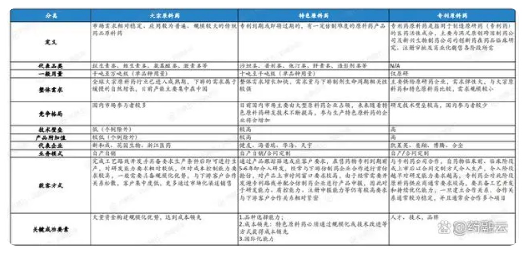 大宗、特色、專利原料藥對比分析